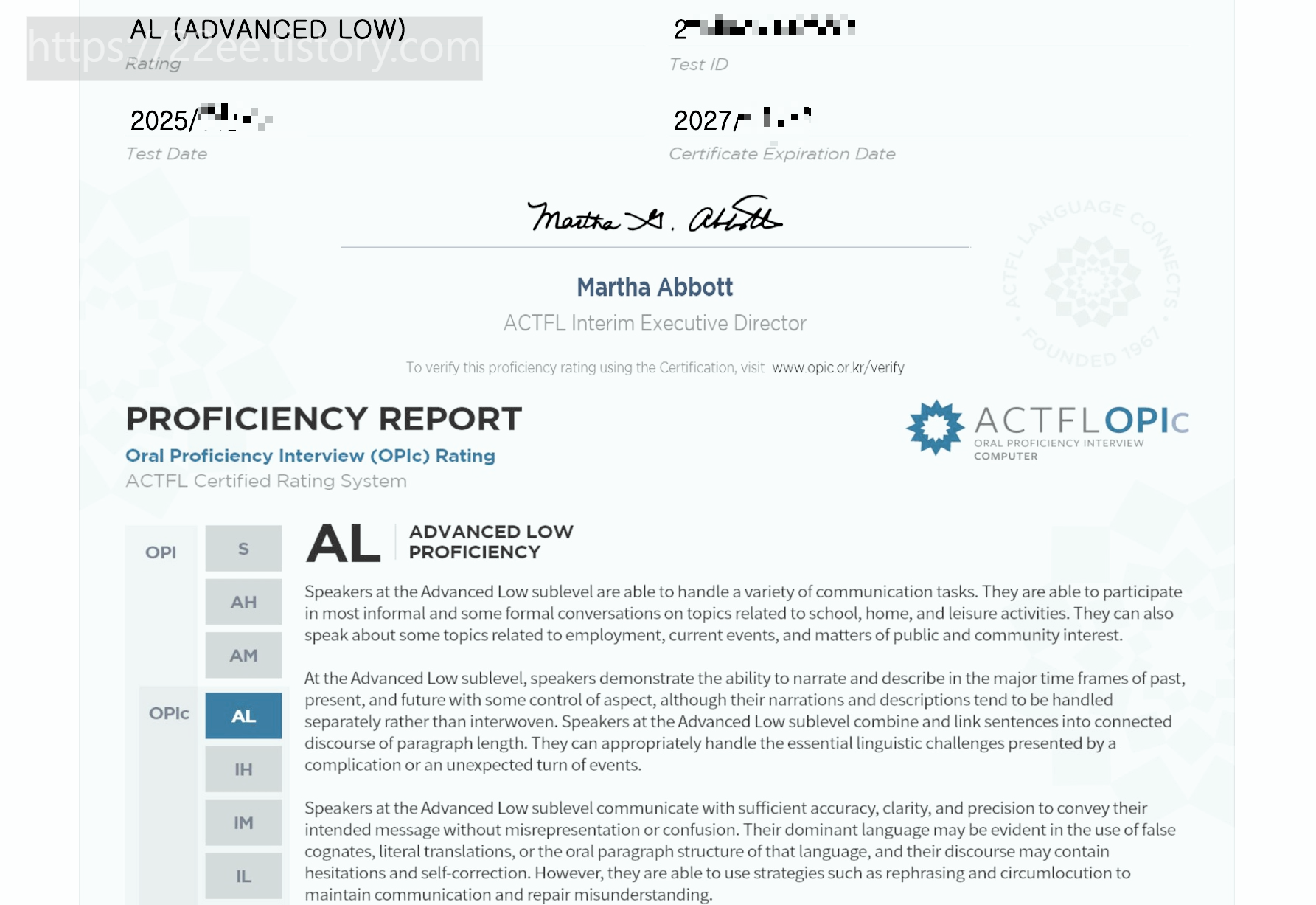 - 나는 스킵없이 전부 짧게라도 답변했지만, 한두 개 스킵해도 AL은 나올 수 있다고 한다.. 그러나 가능한 다 대답을 하는 것을 추천! 대신 답변이 잘 나오는 문항에서 길게 말하면 됨.